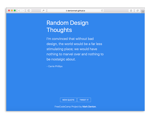A random quote generator built using the Quotes on Design API. First project using JavaScript and JQuery.